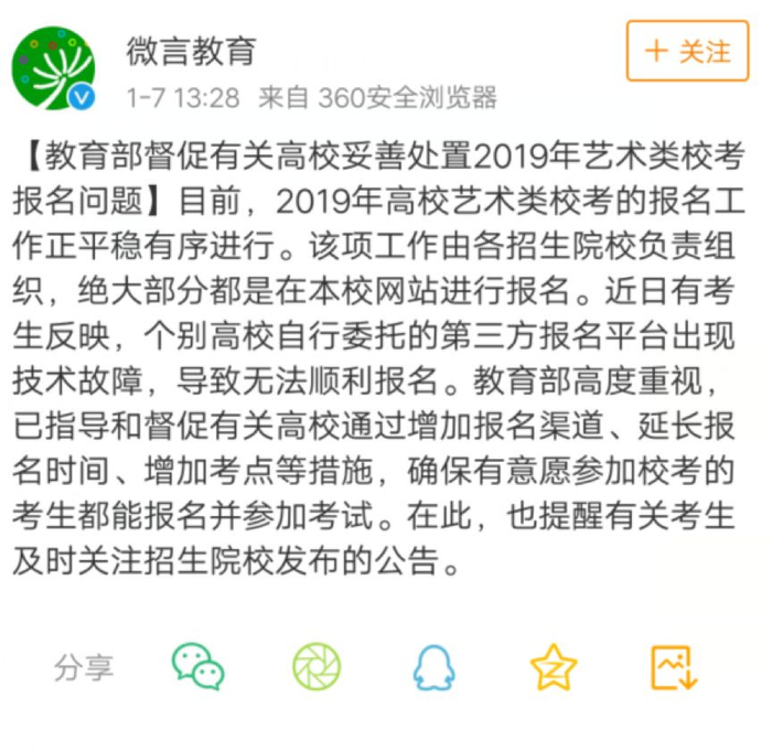 不过,虽然教育部与这次引起艺考生们强烈不满的“艺术升”平台并无关系,这遇到报考困难的艺考生们却在教育部的负责范围内。