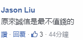 针对郭信良退了民进党又想回党一事,岛内有网友讽刺称,原来诚信是最不值钱的,“把自己的诚信当狗屎”。