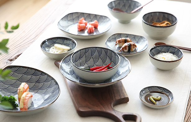 日式餐具小而精美,每人一套餐具,它的观赏性大于实用性,会有不同的花纹雕刻在餐具上面。除了骨瓷餐具还有木制餐具,摆上餐桌也是非常精巧美观。