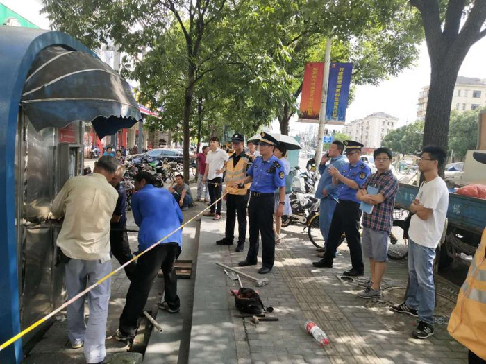去年7月,有市民反映街面东方书报亭、彩票亭等亭棚大多有异化经营情况,不但占道,还影响街面市容美观,希望相关部门能进行综合整治。8月下旬,在“中国进口博览会”倒计时100天之际,周家渡城管中队迅速启动了一次对辖区摊亭棚的全面整治。经过大家努力,21个占道经营、异化经营的亭棚3天内全部顺利清除。