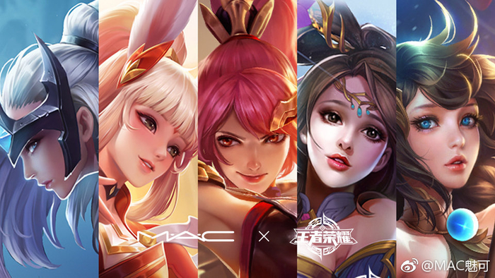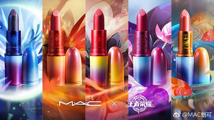 “MAC×王者荣耀本命英雄同款唇色现已登陆M•A•C魅可官网及天猫旗舰店,制胜红场为你助攻,轻松CARRY全场不掉线!上单花木兰,经典正红色RUBY WOO,力挽狂澜;下路阿离水漾西柚色SEE SHEER,元气十足,疯狂输出;中单貂蝉蓝调玫红色ALL FIRED UP,别具风情,SOLO全场;野区露娜深紫色带蓝色偏光ON AND ON,冷冽迷离,抢占先机;辅助大乔橘粉带金闪CB96,大热人鱼姬,助攻超神!”没玩过王者荣耀的人还在一头雾水,游戏迷早已热血沸腾。