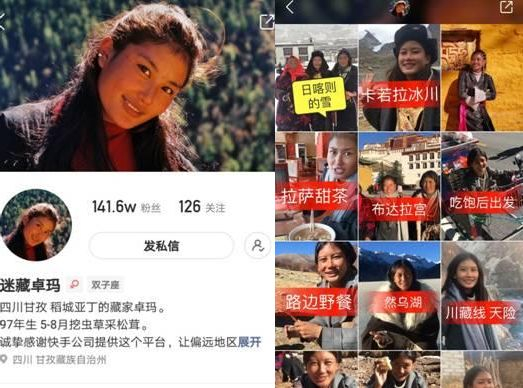 格绒卓姆在快手上取名“迷藏卓玛”,粉丝超150万。