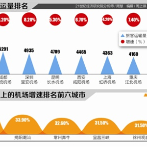 相反,增速迅猛的热门旅游城市机场,则包括湖北十堰武当山机场、云南保山云端机场、 山西大同云冈机场、湖北恩施许家坪机场、河南洛阳北郊机场、湖北襄阳刘集机场,都保证了30%以上的增长。