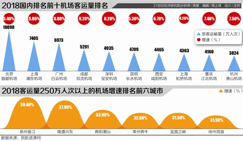 原标题:2018年全国机场客运量图谱: 北京破亿居首,泉州等三四线城市增速爆发