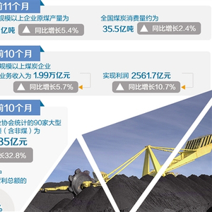 据初步测算,2018年前11个月,全国规模以上企业原煤产量为32.1亿吨,同比增长5.4%;全国煤炭消费量约为35.5亿吨,同比增长2.4%。