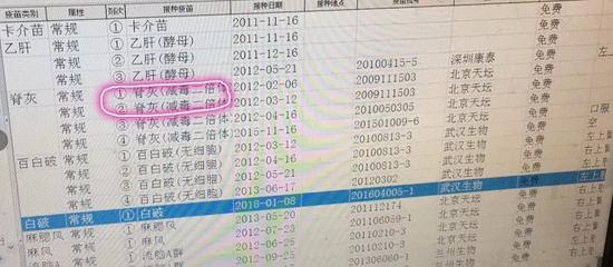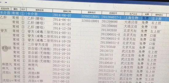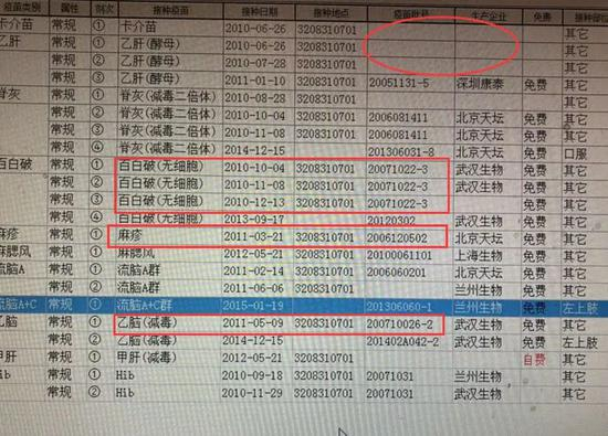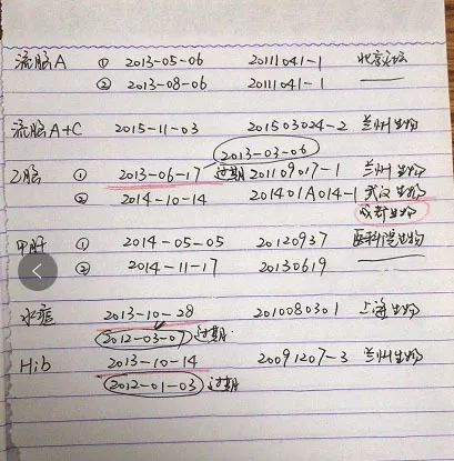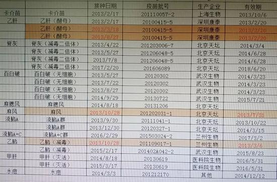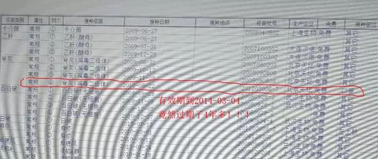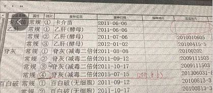 家长C也遇到了同样的问题,卡介苗和乙肝疫苗都没有批号;同时他还发现自己孩子注射的乙脑、麻疹以及百白破疫苗4针中的3针也都过期了。