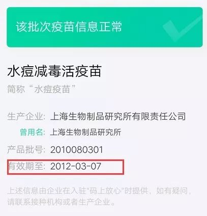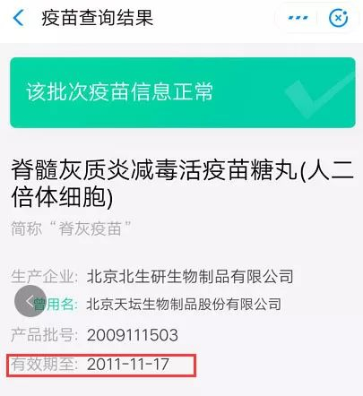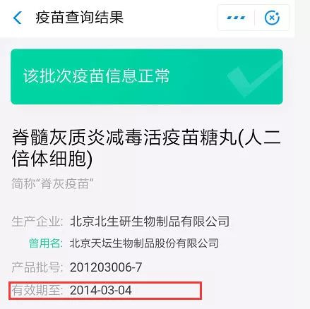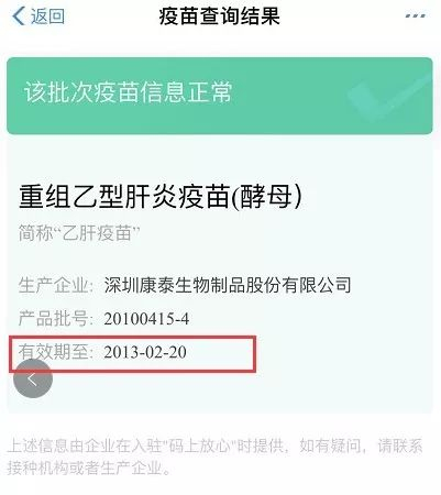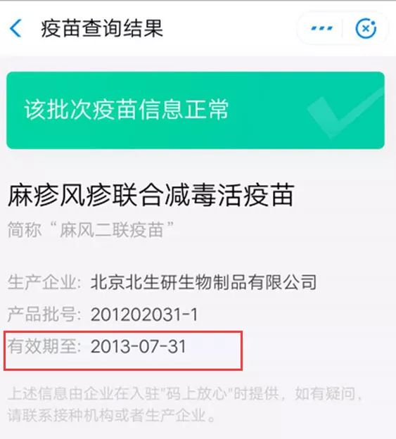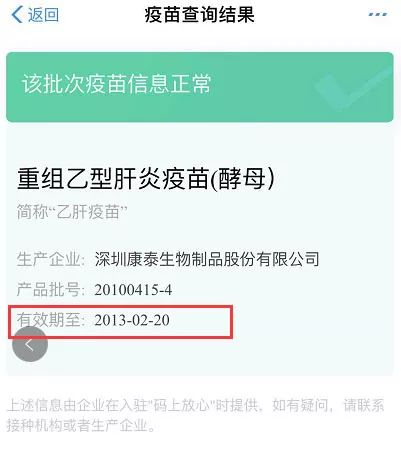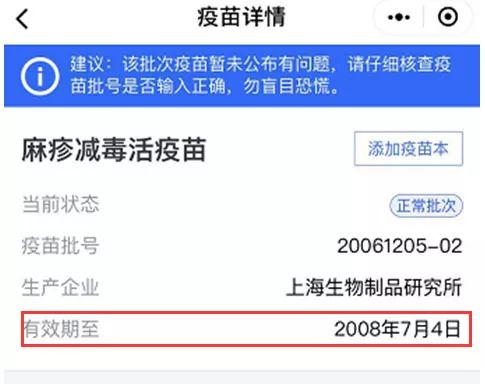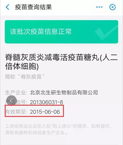 耿直哥也通过支付宝提供的“疫苗快查”功能依照家长D提供的批次进行了核实,发现他所提供的疫苗过期日期属实。