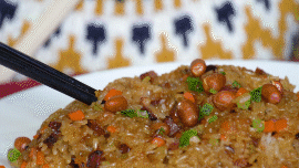 做好的糯米饭热气腾腾,表面还放了些油爆花生、瑶柱点缀,不仅赏心悦目,而且食而不腻,满口生香。一筷子吃下去,糯米中浸着淡淡的腊味香,丰腴的油脂化在口中,还有花生、瑶柱的香气荡在唇齿间,吃完整个人都“暖笠笠”,寒气消除大半!