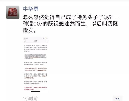 ▲牛华勇院长的朋友圈和微博截图