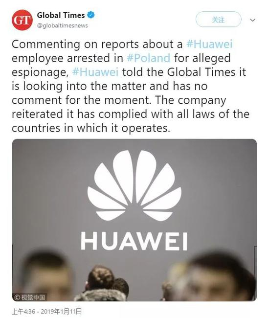 对此,华为公司回应《环球时报》称: