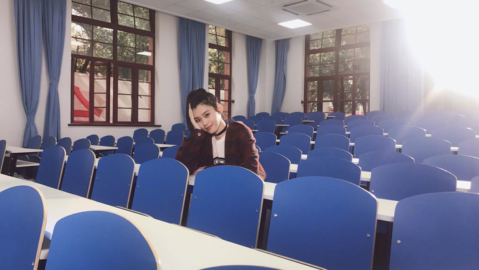 2017年,奚梦瑶重回母校东华大学。图片来自艺人微博
