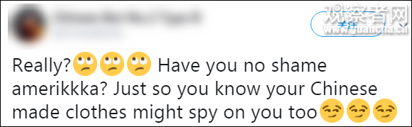 这连载般的“安全风险论”,也引来了推特网民的嘲讽:“你们知道,中国制造的衣服也可能监视你。”