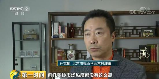 北京市钱币学会常务理事 孙克勤:这张钞是第5张钞,前几次的钞都没有这个热度,目前大家都在玩新钞,我预测新钞的热度会慢慢降下来。