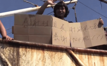 渔船船长邬霜亚还通过甚高频不停地说:“谢谢,谢谢,非常感谢!”