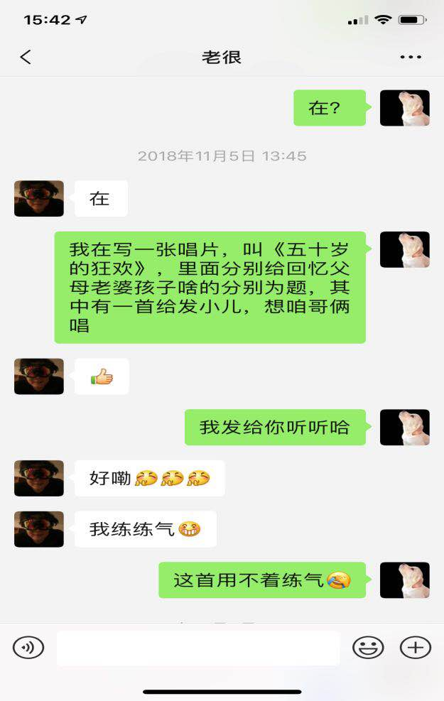 小柯:我和老狼之前有过一次合唱经历,黄小茂组的局。他约我写首关于西藏的纪录片的歌,于是我写了首《无忧的蓝天》,找了老狼一起。那次录音挺有意思,在我们正式录音后,老狼又自己偷偷跑到我棚里录了一次,说是当时没录好,还不好意思再约我,于是单独约了我的录音师自己偷偷来录,直到最后混音时录音师才告诉我。这其实体现了他的两个特点:认真、局气。“局气”这个词儿应该是纯北京话,翻译成白话是“够朋友”“做事周到”的意思。我在《给发小儿》里写到了“北京爷们局气,有事别磨不开提”,很大成分是写给他的。