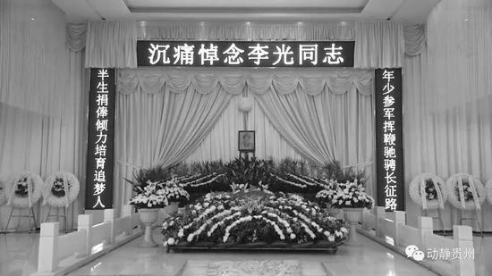 今天上午8时,李光遗体告别仪式将在遵义灵鼎山殡仪馆9号厅举行。