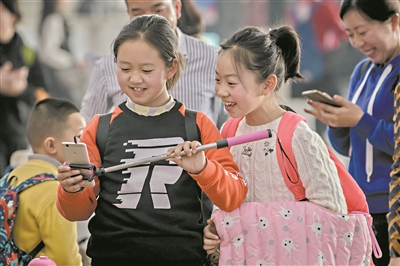 小朋友开心自拍。
