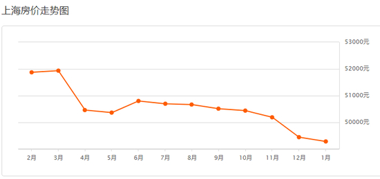 安居数据显示,2018年上海二手房整体呈现持续下跌的趋势,到今年1月均价在4.9万/平方米左右。