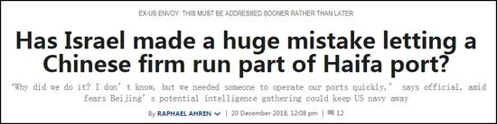 据悉,上海国际港务集团(SIPG)与以色列交通部在2015年达成协议,该企业将于2021年开始租用海法港口,租期25年。由于美军舰只也使用该港口,美国与以色列两国的国防、情报官员均表达了“严重关切”,并施压政府进行审查。