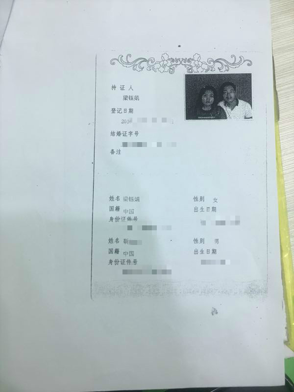 家人签收快件后,将里面的法院传票拍图发给了她。这时,梁钰娟惊讶地发现,自己“结婚”了。