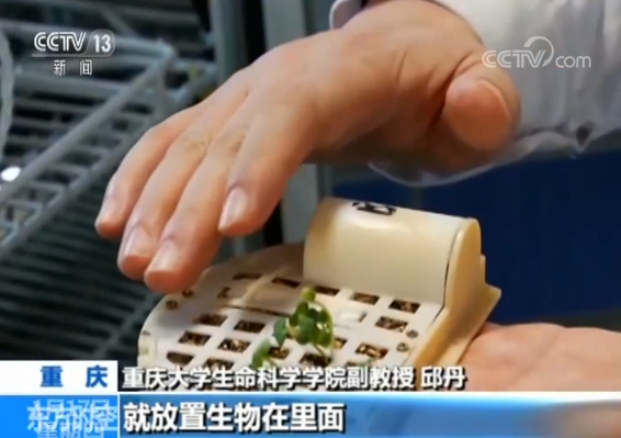 重庆大学生命科学学院副教授 邱丹:这个是一个3D打印的模块,月球上放的是这样一个完全一模一样的模块,就放置生物在里面,然后盖上水溶棉,然后固定好,封上胶,确保它不会泄漏或者溢出。