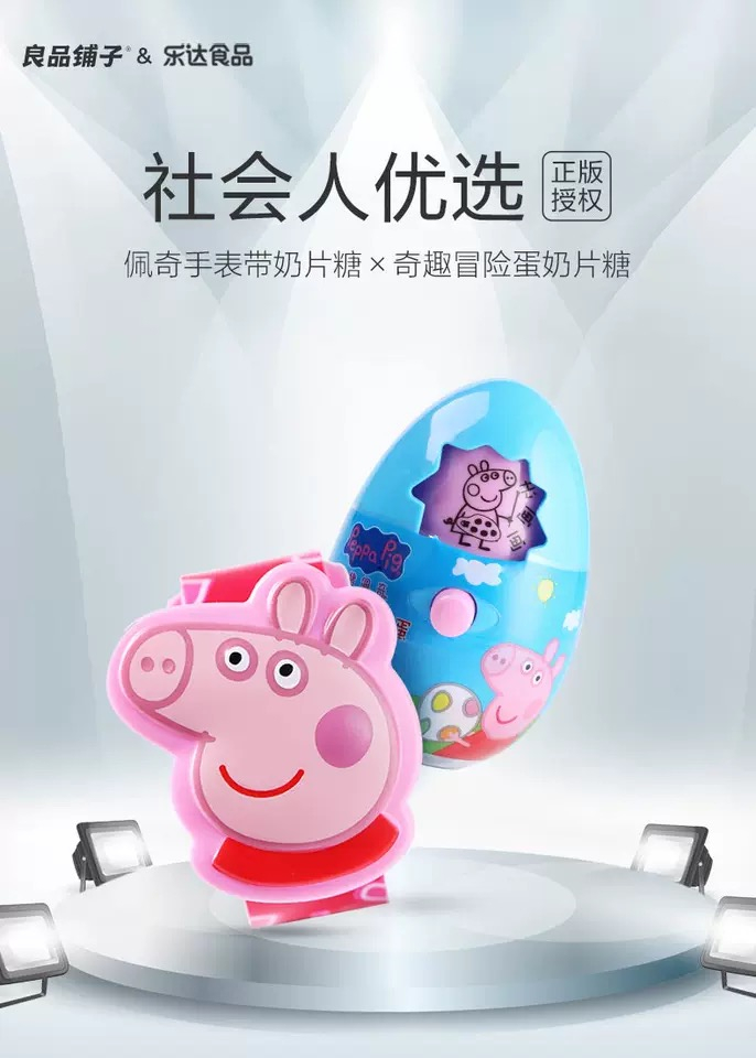 2018年5月,良品铺子获得乐达食品授权,成为天猫商城小猪佩奇售卖渠道。在良品铺子线下门店,奇趣蛋、棒棒糖、礼盒等小猪佩奇周边产品也在售卖。