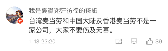 有大陆网友对此表示强烈不满,并要求麦当劳官方作出解释。也有网友指出,台湾麦当劳和大陆麦当劳其实并不是一家公司。