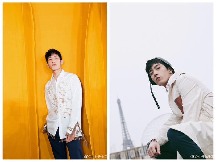井柏然穿了一件材质和剪裁都很常规的白衬衫,但胸前的镂空设计、袖口及底边的复古巴洛克宫廷风格装饰,让井柏然在灵气之外,多了一份贵气。他此次巴黎之行的第二套造型是米白色风衣搭配空军帽,仔细看内搭还是那件白衬衫,其“万能百搭”可见一斑。