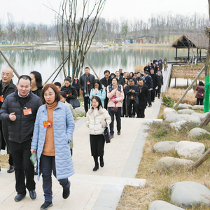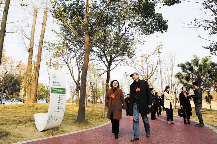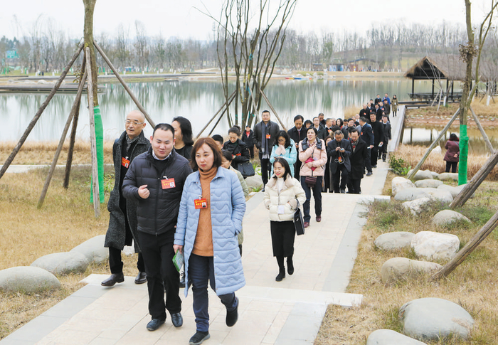 代表们视察新都区毗河绿道·音乐文创公园