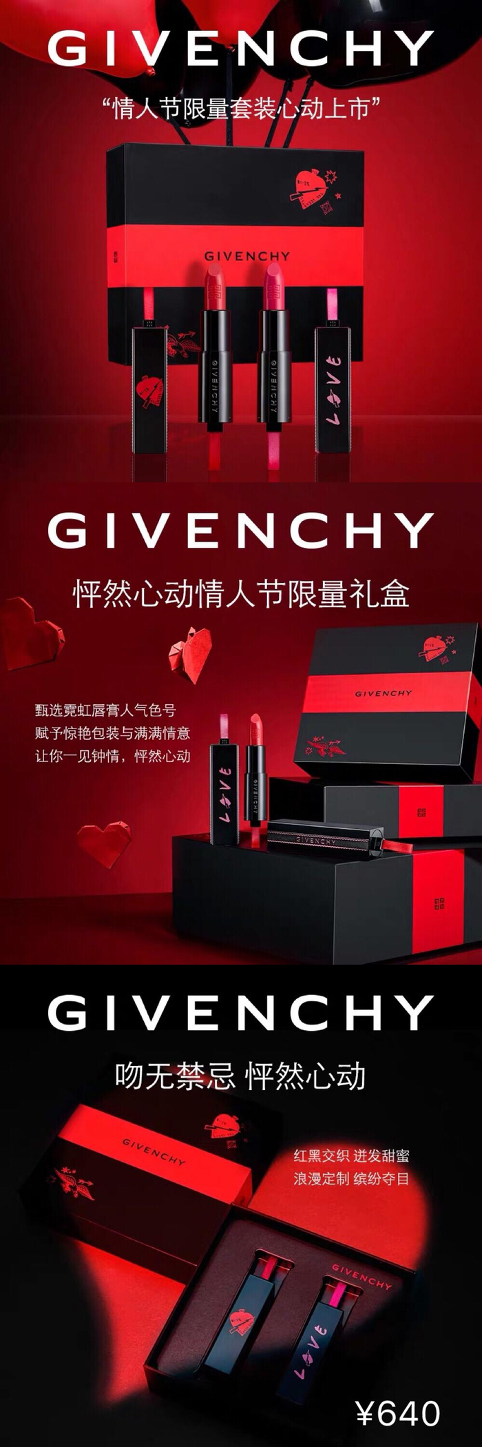 除了手袋,这一次纪梵希还带来了“怦然心动情人节限量礼盒”,这份唇膏套装里面包含了一红一粉两色,粉色为“禁忌之吻”的霓虹唇膏人气色号N22精灵粉。同时,也单独推出了情人节单支限量版。