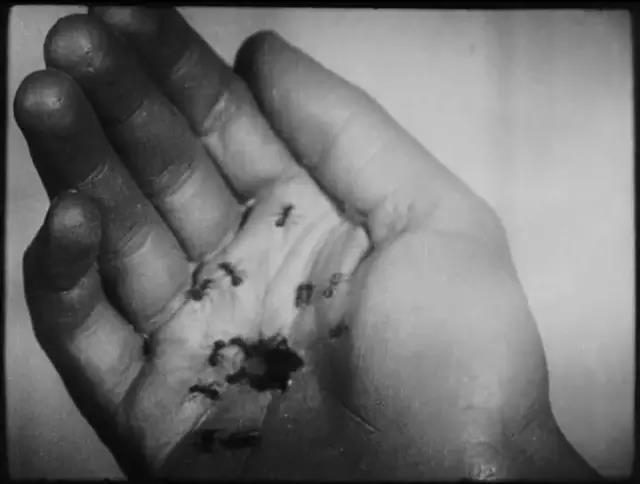 在这部电影中,从手中爬出蚂蚁这个场景让人难以忘怀。达利在现实中曾看见一只受伤了的蝙蝠在路边,被一群蚂蚁围攻,蝙蝠逐渐要被这群蚂蚁“生吞活剥”,他一把拿起爬满蚂蚁的蝙蝠,疯狂地咬了起来。
