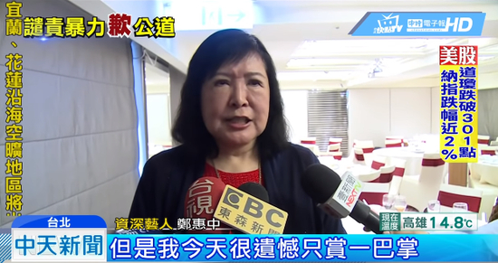 日前,台湾资深艺人郑惠中因不满台“文化部长”郑丽君推动“去蒋化”,在餐会上掌掴郑丽君。事后郑慧中召开记者会,为“打人”行为表达歉意,但坚称抗议“去蒋化”。