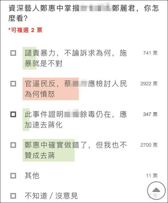 台湾“联合报”对此事的投票调查显示,认为“郑慧中虽然行为不当,但民进党应当检讨自我”的票数居高不下。