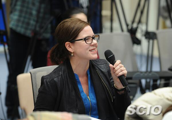 然后问道,“您刚刚一直讲到长城的文化意义,可能您也知道我们在美国也有关于建墙也就是边境墙的讨论。请问,您对特朗普总统的边境墙有什么看法?您觉得特朗普总统可以从中国长城这学到什么?谢谢。”