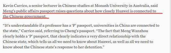 而且这篇报道的恶毒之处,不仅在于继续歪曲事实抹黑孟晚舟,还顺便把那位持有“公务普通护照”的人士给坑了。