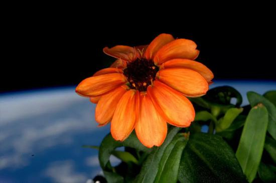 人类在地球以外培育的第一朵花——一株橘黄色的百日菊成功在国际空间站绽放。