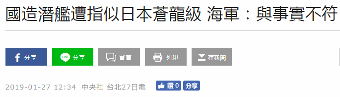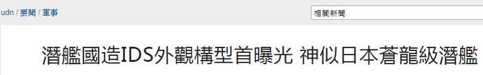 这篇把台IDS潜艇设计图比作日本自卫队的报道出自1月27日的台湾《联合报》。报道称,台海军完成“第一阶段”计划中的首艘柴电动力潜艇设计图,预计3月10日向台“立法院”进行“秘密简报”。