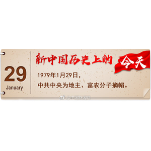 #新中国历史上的今天#1979年1月29日,中共中央作出决定,除极少数坚持反动立场至今还没有改造好的以外,凡是多年来遵守法令,老实劳动,不做坏事的地、富、反、坏分子,经过群众评审,县委批准,一律摘掉帽子,给予人民公社社员待遇。#新中国七十年#