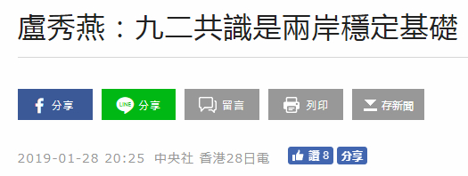 被问及有关“九二共识”的问题时,卢秀燕说,两岸应该尽量走向和平,因为两岸人民渴望和平,在和平中进行经贸往来和稳定发展,而“九二共识”是一个很重要的前提基础。