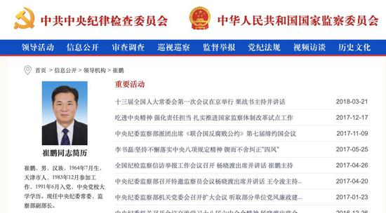 2010年至2011年,崔鹏在丰台区任代区长、区长,后任北京市政府天安门地区管理委员会党组副书记、主任,2014年3月,崔鹏履新中央纪委副秘书长,2017年1月任监察部副部长,后成为十九届中央纪委常委。