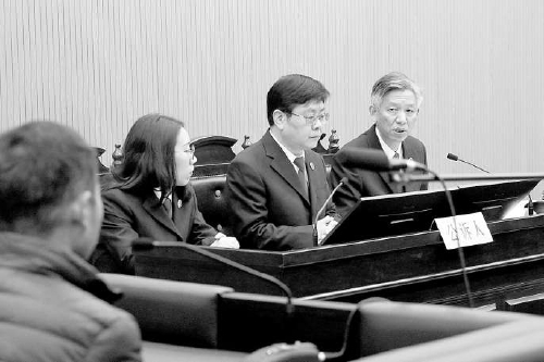 高旭明检察长(右一)钱亚强副检察长(右二)在法庭上