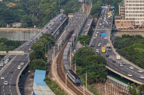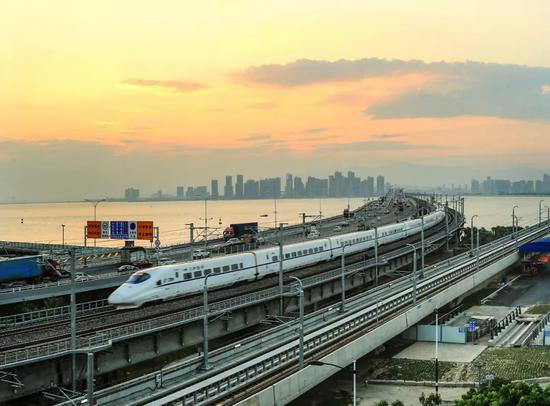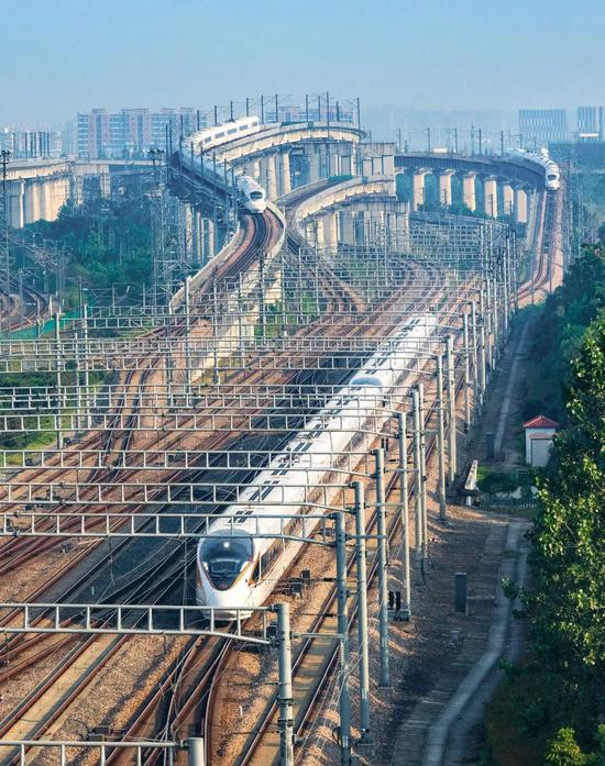 ▼在上海汇聚的高铁路段,图中近处为复兴号,摄影师@刘慎库