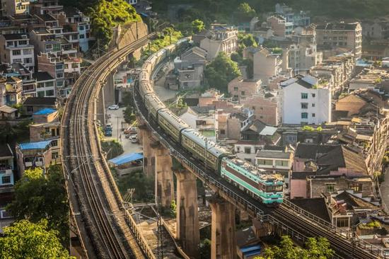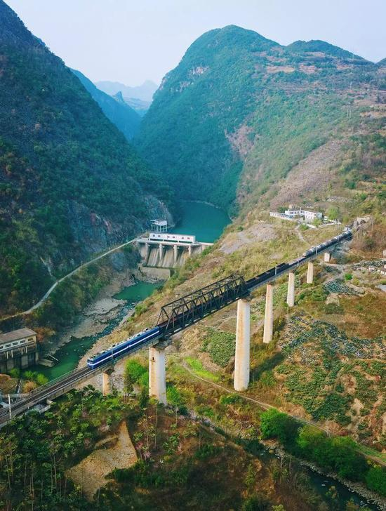 ▼蔡家沟特大桥,位于沪汉蓉快速客运通道的重庆-利川段,最高墩139米,是世界上最高的双线铁路桥墩,摄影师@武嘉旭
