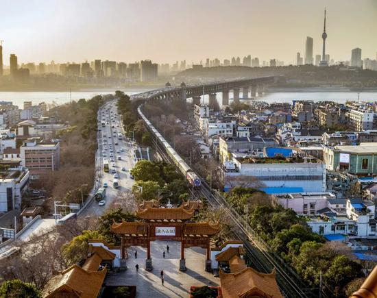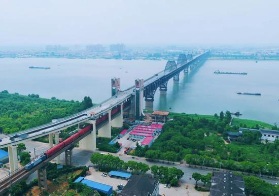 ▼武汉天兴洲长江大桥,4条轨道能同时通过京广高速和普速铁路,摄影师@田春雨