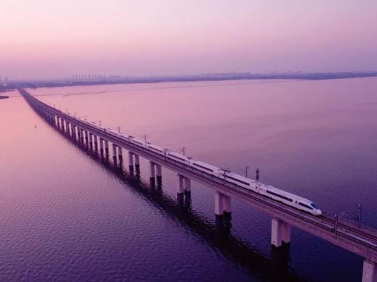 ▼京沪高铁丹昆特大桥,全长约165公里,是世界上最长的桥梁,摄影师@王璐