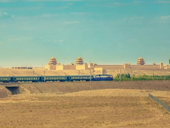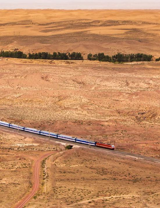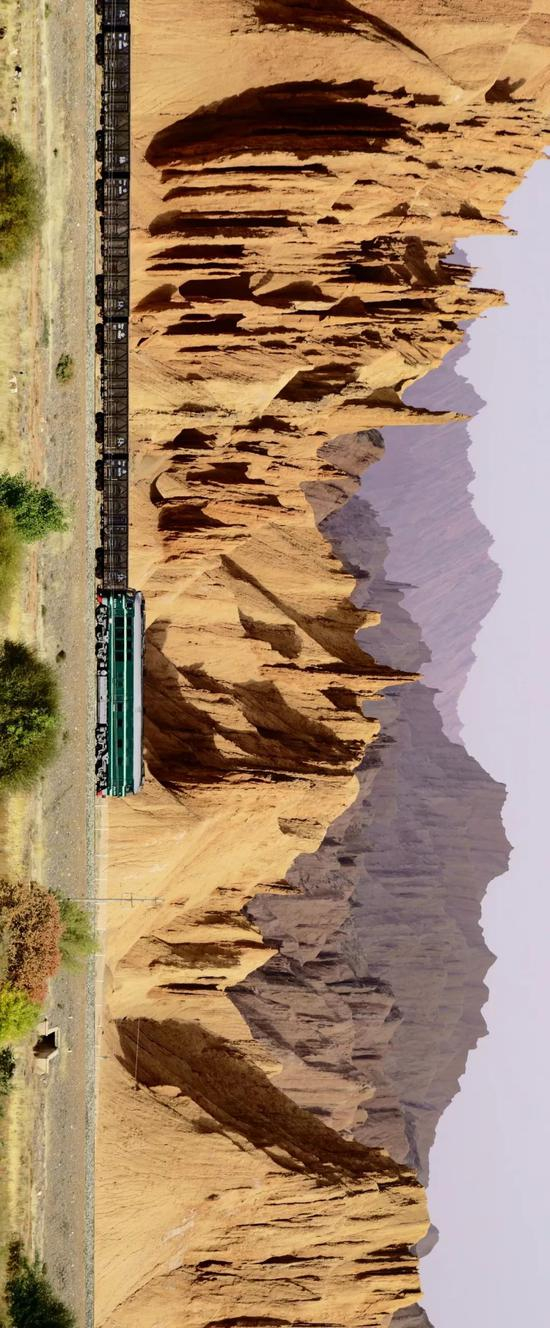 ▼徐兰高铁与兰新高铁相连,可从江苏徐州到达新疆乌鲁木齐;下图为兰新高铁沿线,摄影师@赵伟森