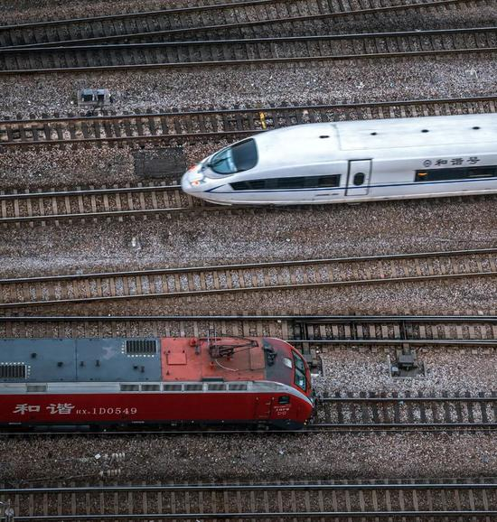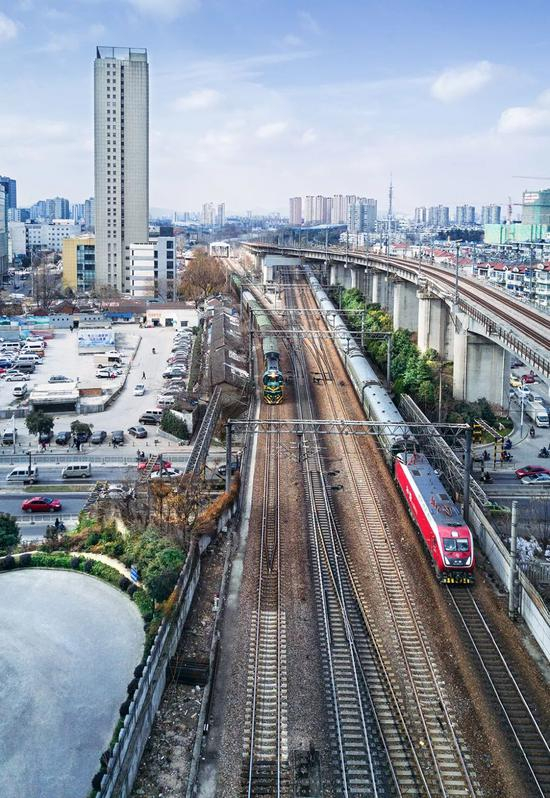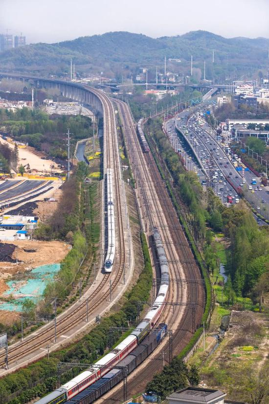 ▼上文数据来自《2017年铁路统计公报》;下图为4种不同的列车同时行进在南京站前,摄影师@房星州