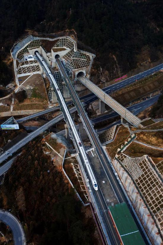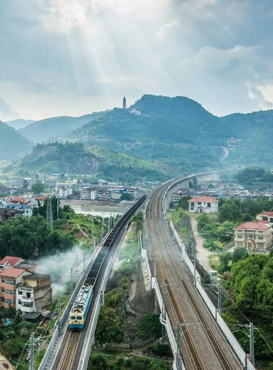 ▼沪昆高铁与合福高铁交汇,拍摄于江西上饶附近,摄影师@王璐