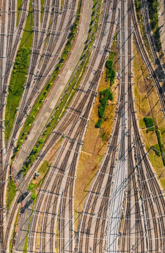 ▼汇聚交错的铁轨,拍摄于广州,摄影师@毕加思索