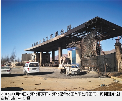 2018年11月28日的张家口爆燃事故,波及盛华化工公司南侧的停车场。